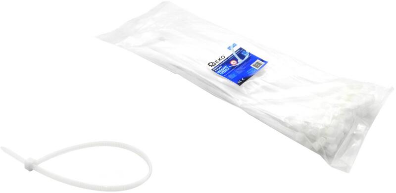GEKO nylon kábelkötegelő 200 x 4, 8 mm, fehér, 100db (G17154)