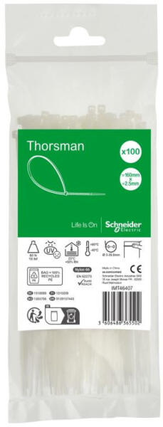 Schneider Electric Thorsman - IMT46407 - Kábelkötegelő, 160x2.5mm, színtelen (100 db) (IMT46407)